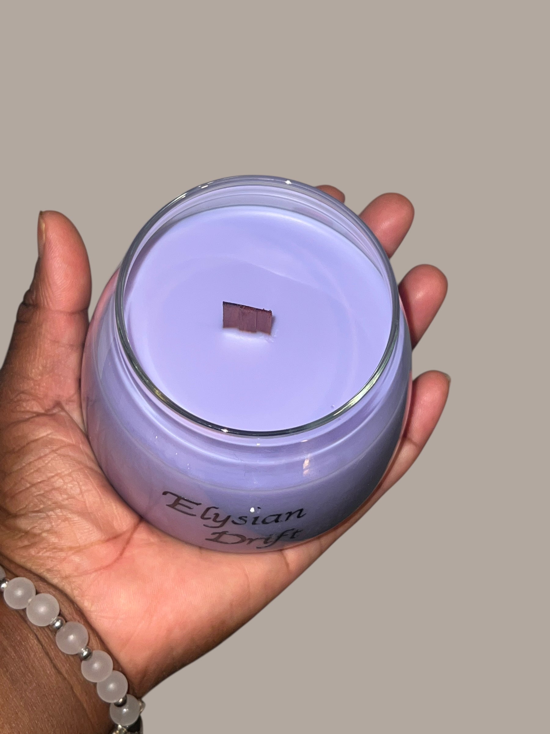 Lavender Serenity. Step into a realm of divine peace with Elysian Drift. This luxurious lavender candle is a sanctuary in wax—soft, floral, and soul-soothing. Let its calming aroma melt away the chaos of the day, guiding you to a state of tranquil bliss. Perfect for winding down, meditating, or creating a moment of stillness in a busy world.